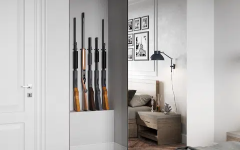на личное оружейное хранилище. Полноценная сертифицированная система способна вместить десятки единиц. Устройство соответствует всем нормам
